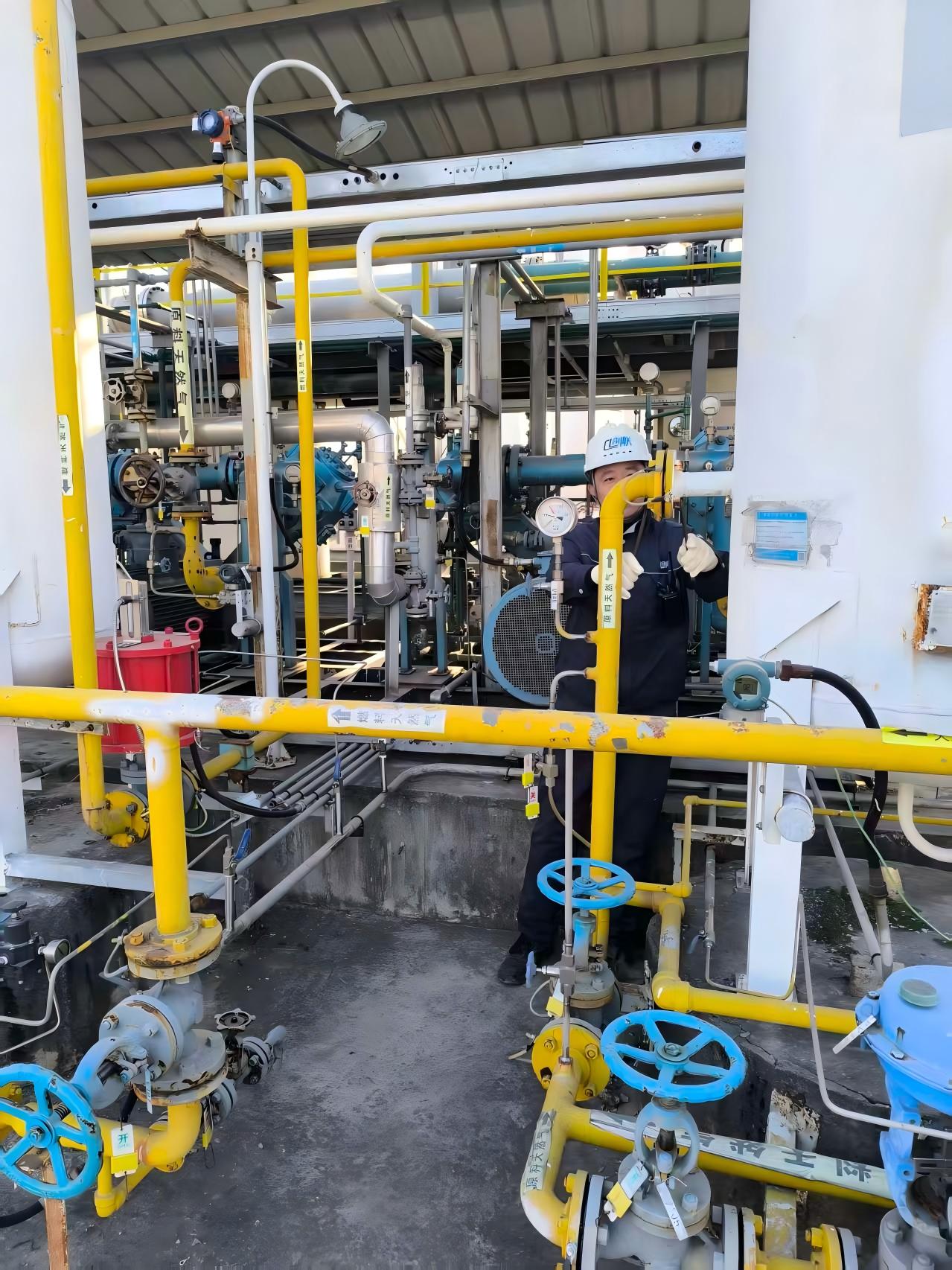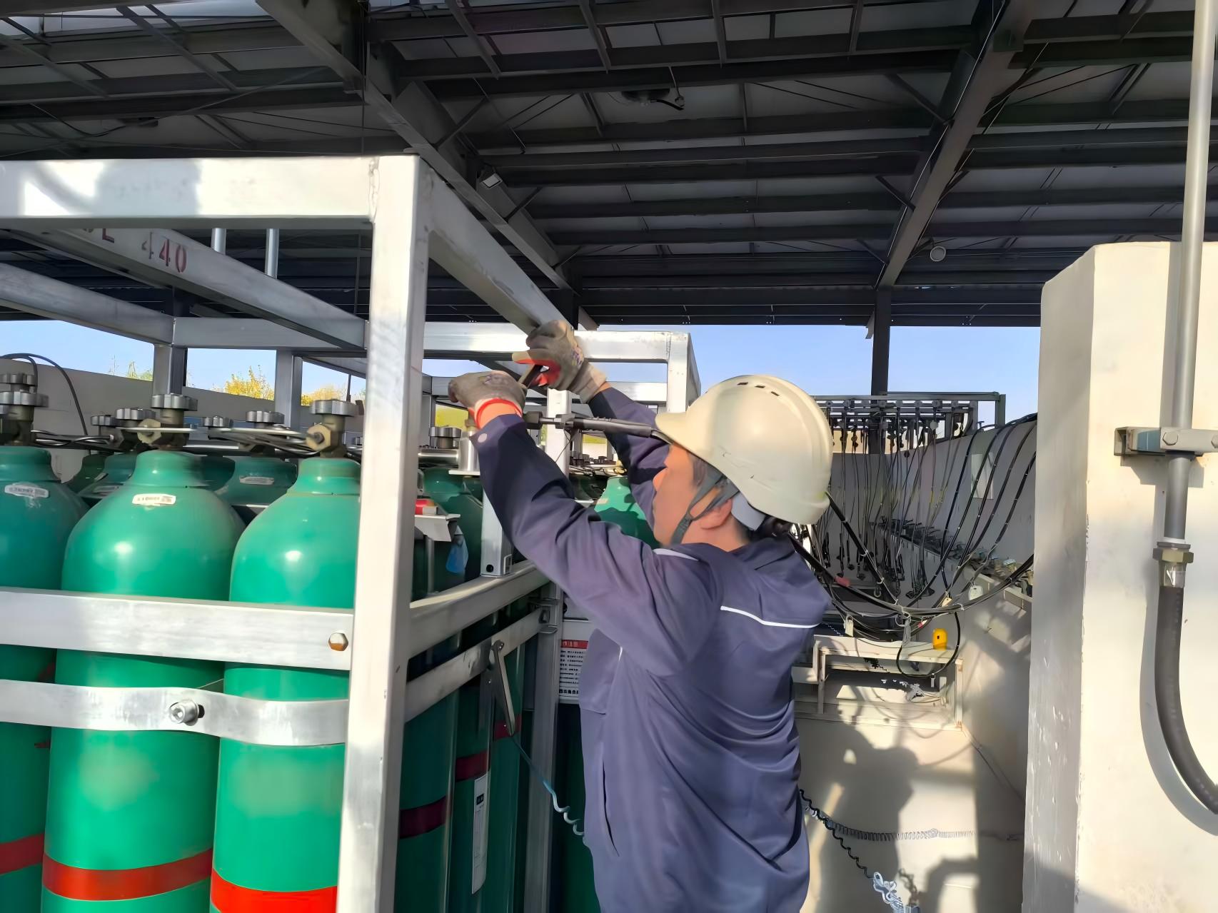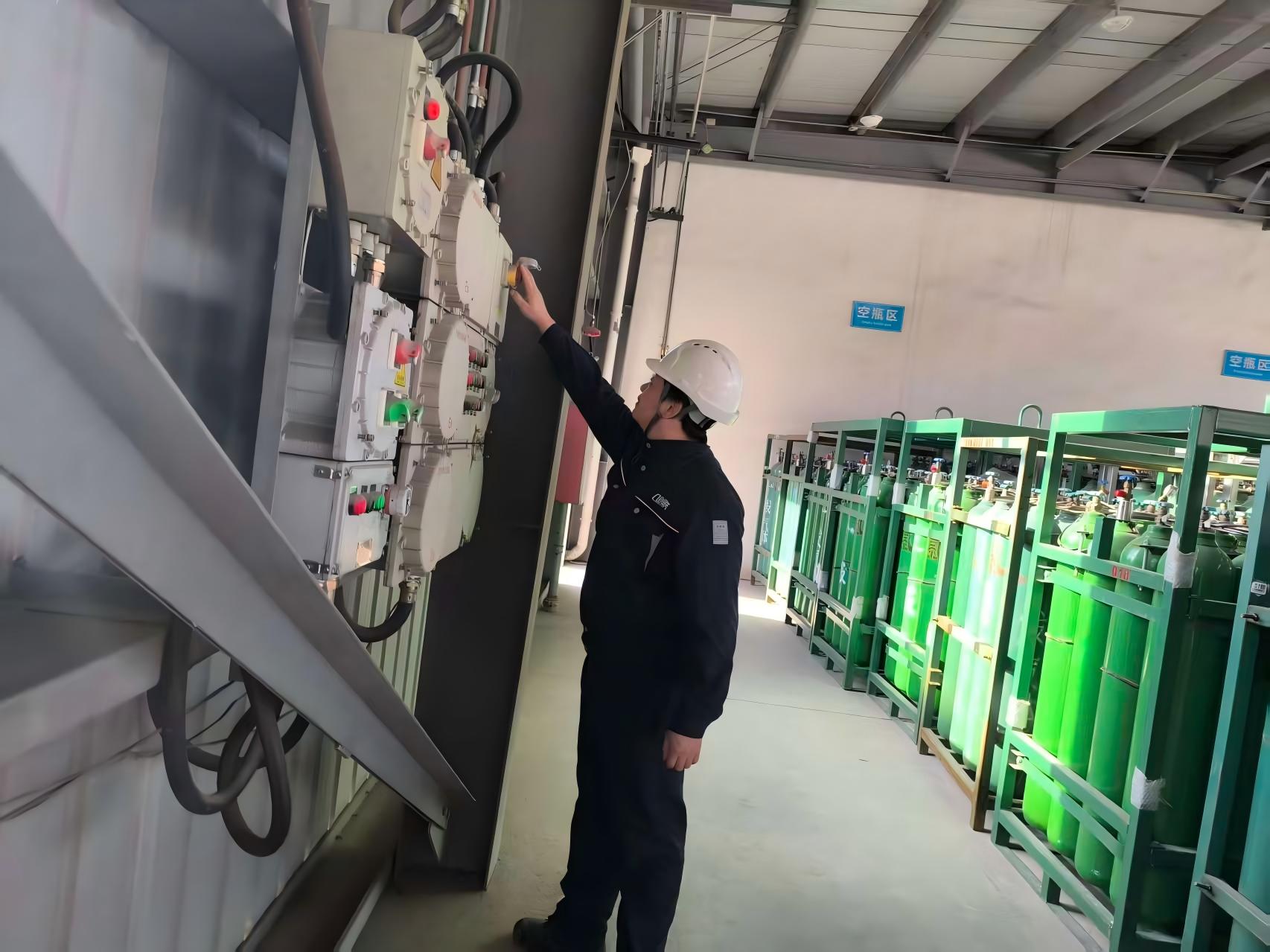 鋼瓶充裝班孔令東按下鋼瓶充裝緊急切斷閥“按鈕”,關閉充裝進口總閥。張庭關閉集裝格保壓閥,張慶輝打開放空閥泄壓,迅速拆除正在充裝的集裝格。