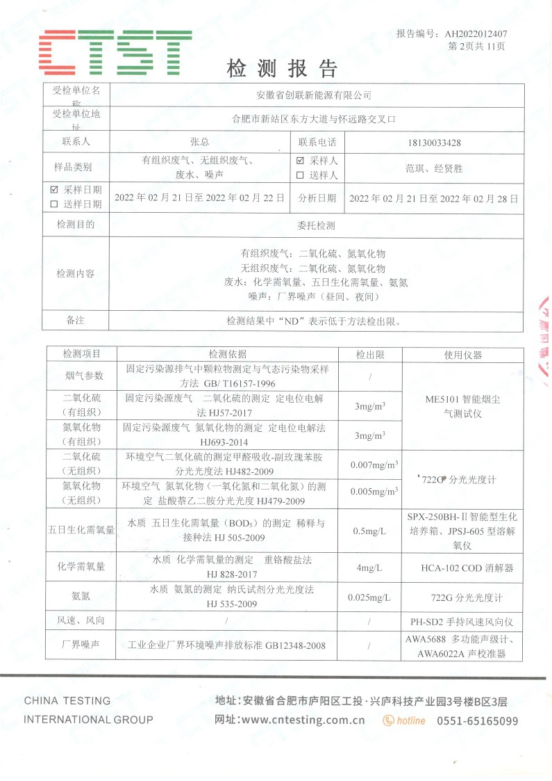 安徽省創(chuàng)聯(lián)新能源有限公司600Nm3/h 天然氣現(xiàn)場 制氫項目竣工環(huán)保驗收公示
